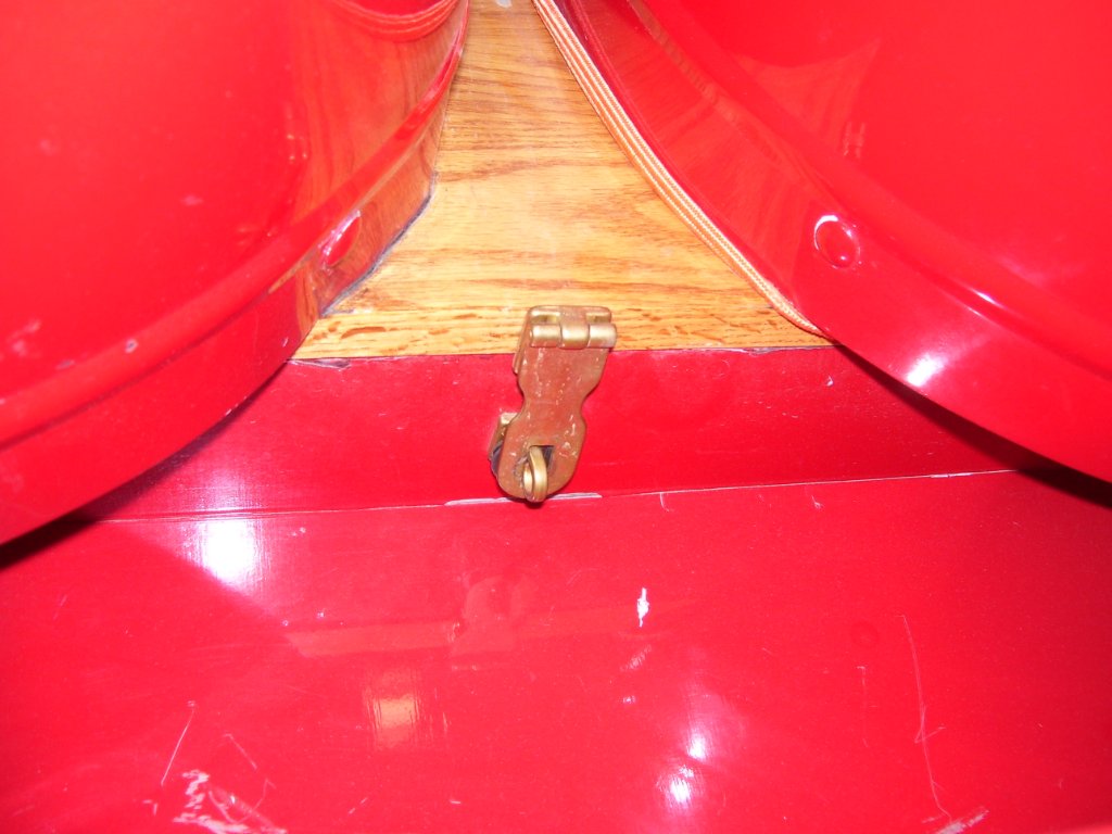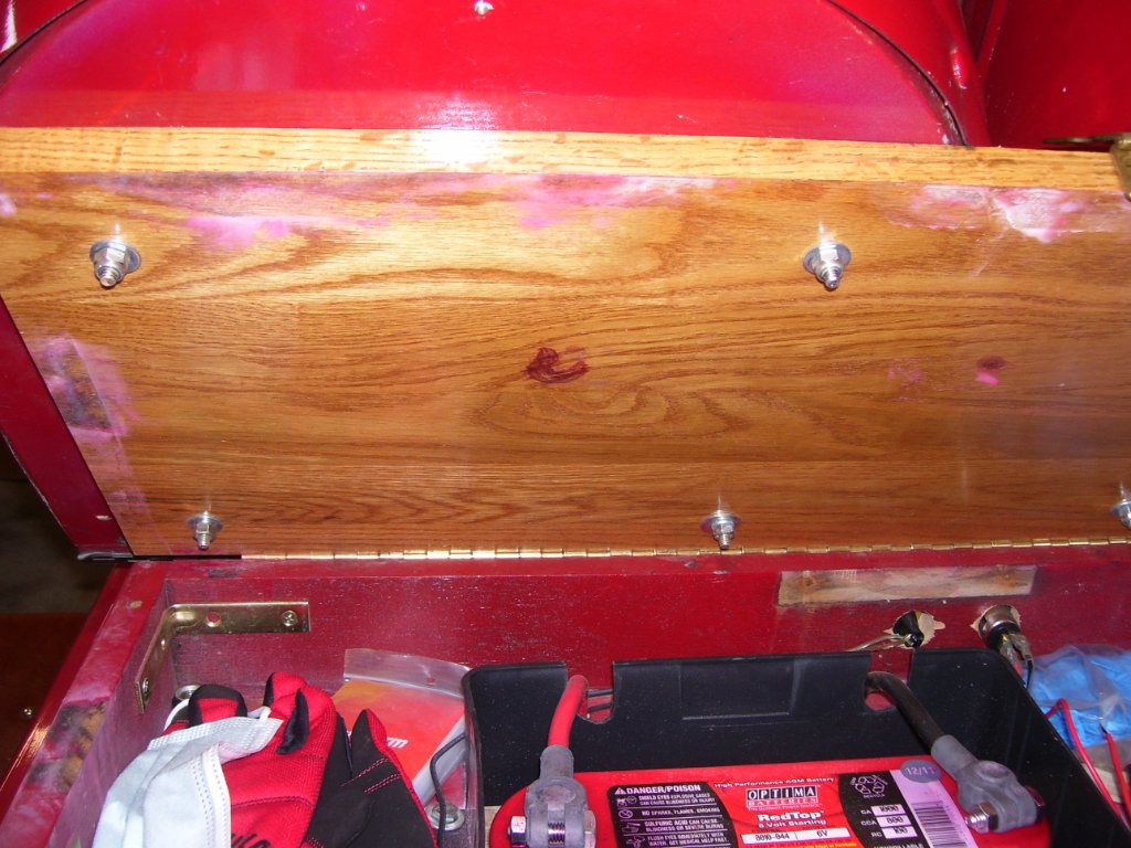This is the underside to show you how the seat platforms were screwed into the oak slab This is the clip that holds the seat down in the back. There are neoprene washers because otherwise it goes click, click, click down the road.
