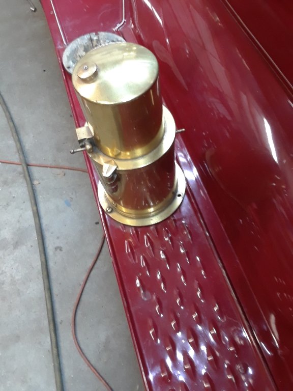 I use a 1/8 inch rubber pad under the base and mount it to the running board. You should have a small round hole in the apron for the red rubber hose to go through from the generator to the light tube at the bottom of the fins inside the engine compartment. From that tube you should have rubber hose going to the headlamps on either side. That generator looks to be a Jno Brown style generator judging from the 3 hole base mount although it could be a Corcoran but most Corcoran’s had 4 holes I believe. I would use flat brass washers and brass bolts on the top side and brass nuts with lock washers on the bottom. Is your generator a reproduction? Do you see a makers stamp on the base of the water tank close to the valve? It’s generally to the left of the valve if it’s an original JB “UNLESS ITS BEEN POLISHED OFF, HA.” The size of your generator is fine. Curious, what type headlamps & sidelights do you have? Is this an original 11? Good luck. Best John