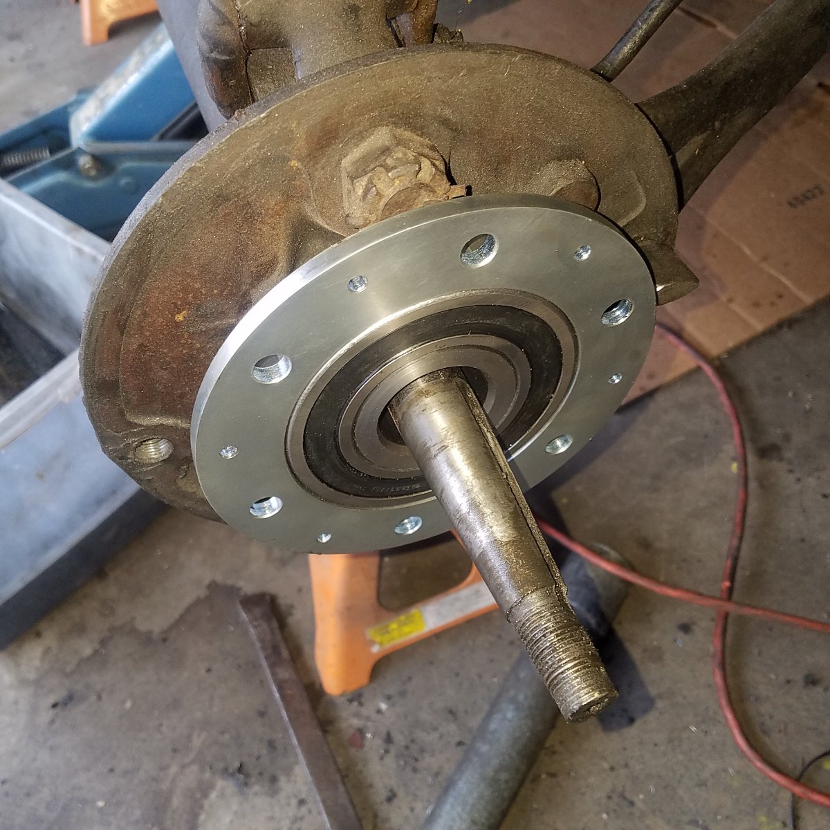 I will order the the bolts with the thinner heads and try it with the Ford service brake drum using a shim on each side. How does the bearing come out of the axle housing? Does it just pull out or is there more to it?