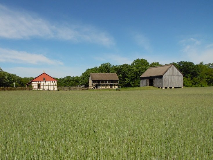 Old World Wisconsin is an open air museum in Eagle, Wisconsin, dedicated to preserving the history of Early Wisconsin settlers. In particular, the museum highlights how early Wisconsin settlers brought their building traditions from the "Old World" to Wisconsin. Normally the museum roads are not open to visitor's vehicles, but during the pandemic they are allowing families to view the museum from their own vehicle on special days. Memorial Day weekend was one of the "special" days. So naturally, we drove our "special" vehicle, along with our Model T buddies Tom & Rebecca.