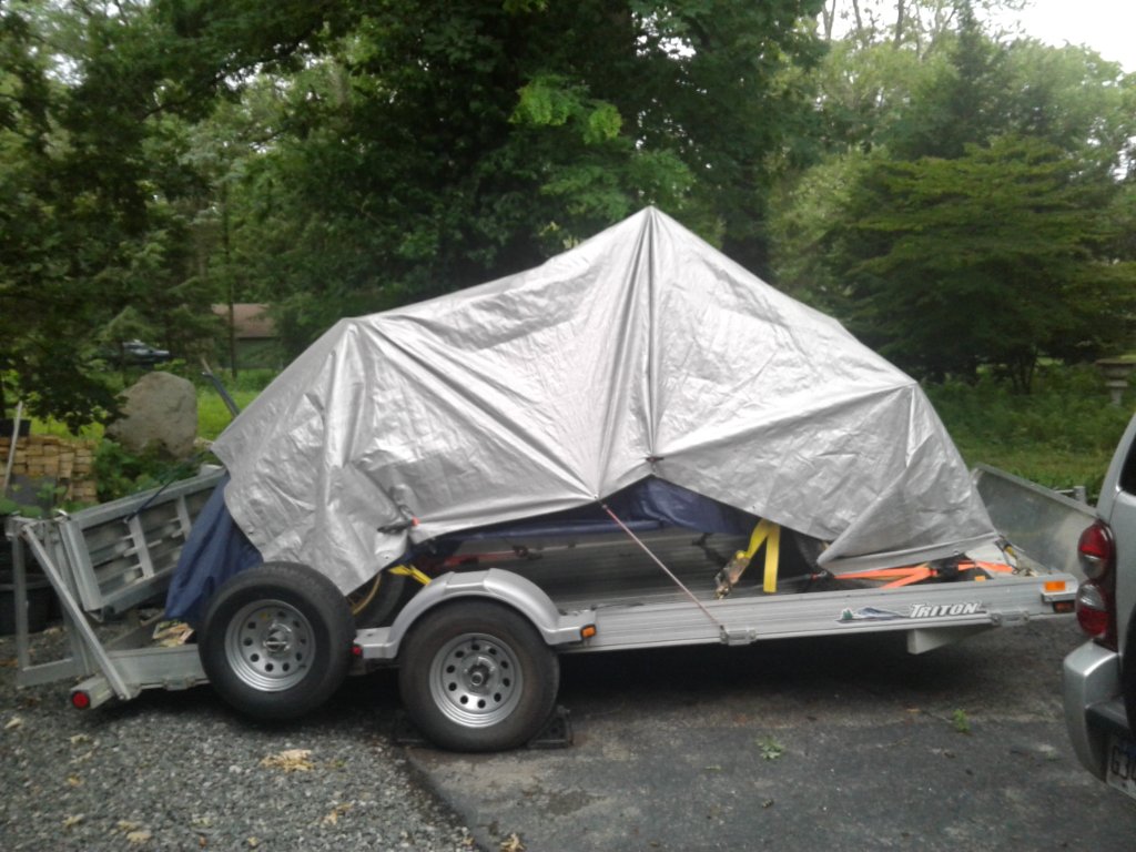 At the moment my garage is crowded, so I can't work on the T without rearranging everything, so I decided (since we are in the middle of a drought) to leave the T on the trailer with a tarp over it.