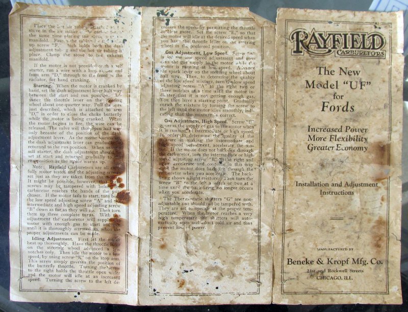I've just picked up a Rayfield UF that is in essentially NOS/barely used condition. It is almost too nice to place into service, but in any event, I'm looking for information regarding the initial setup. I suspect that it will be very similar to a Stromberg OF and will go by that if necessary. In any event, it would be nice to see a factory poop sheet on the thing. I know that a Forum member several years ago had such an item and offered it to anyone who wanted/needed such a thing. Hoping for similar results now, or at the very least someone knowledgeable in this carb describing for me "x" turns out for main jet richness and "x" turns for idle. That would be helpful.