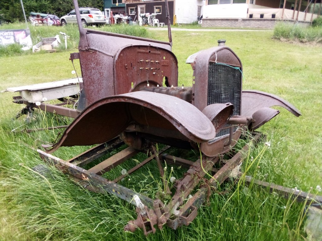 Remains of a '25. Equal length front door hinge. Wide bead front fenders. Stuck engine, crank is up and locked!