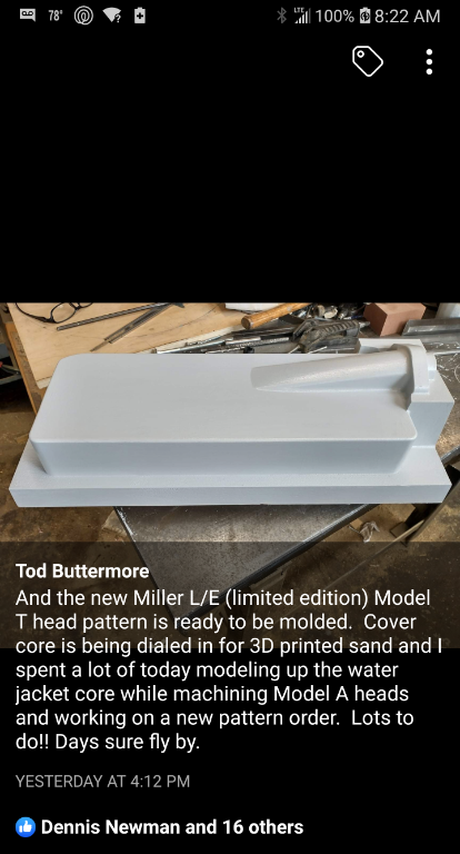 I would be interested in a head that looks stock. I have a Z head on one car that works well. The second T could use a bit more pep . . .Model T Tom wrote: ↑Sat Jun 26, 2021 11:54 amThinking of making a stock looking low head with same combustion chamber chamber as the Miller. Any interest ?
