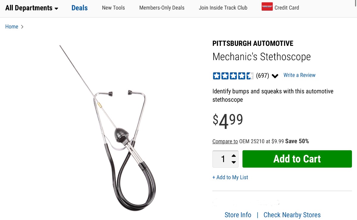Sounds like I’m off to harbor freight to by a stethoscope. Great suggestion. So I’m not crazy about the sound?
