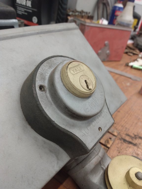 The lock lines up with slots (in center) and lock/face plate will come out.