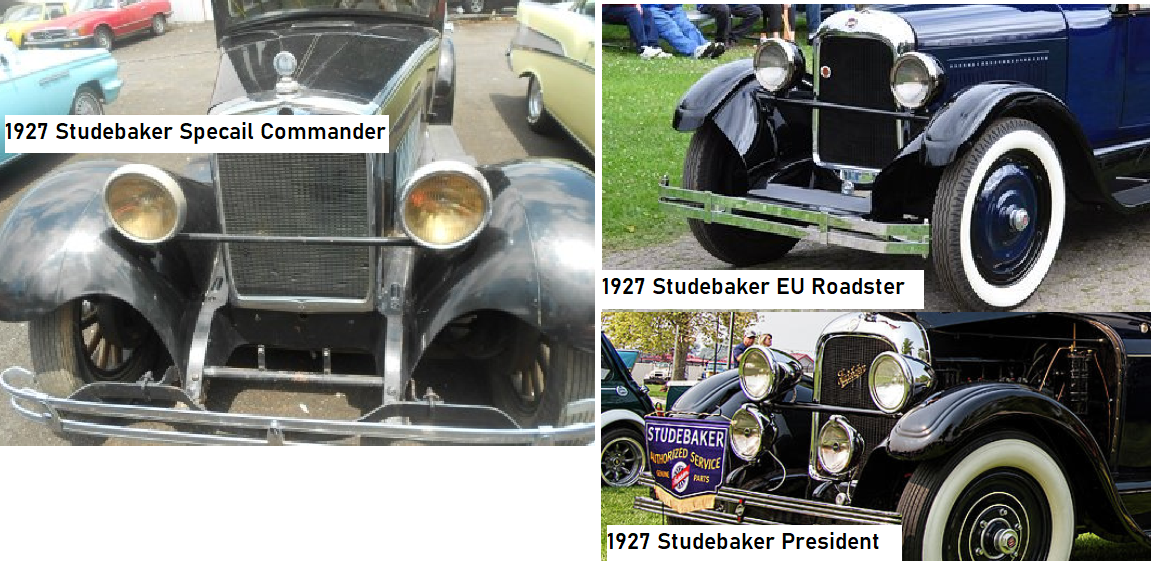 I think Dan H is right! Years ago, I had a 1925/'26 Studebaker standard model, and the front fenders looked very much like that. You may need to check years and models a bit more? They may also fit 1927. I don't know about the other models.