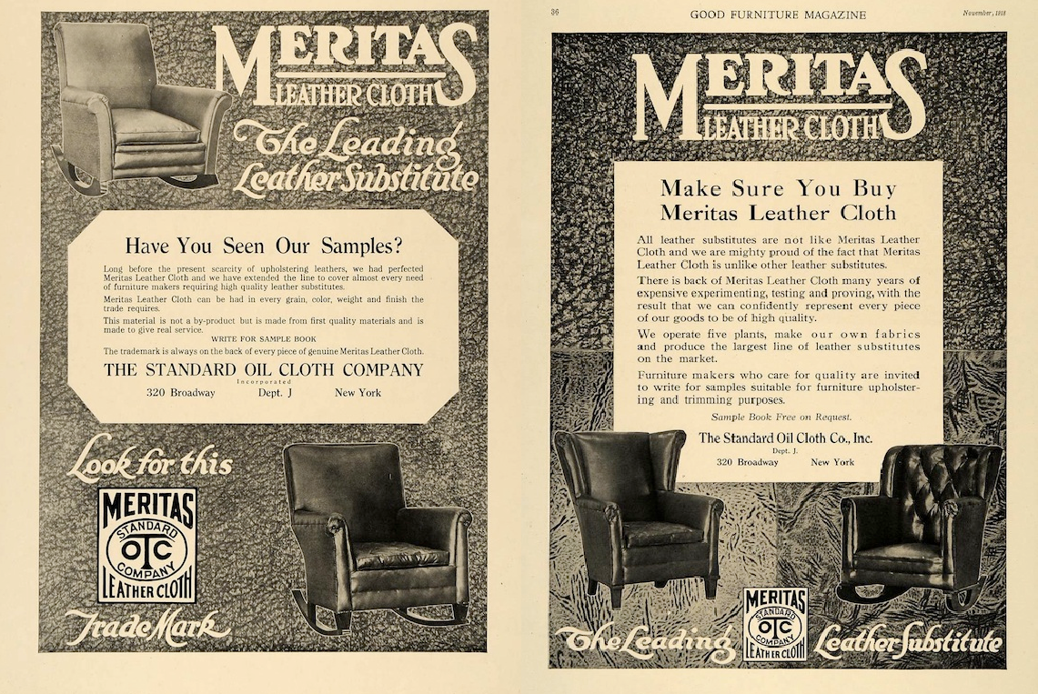 The product we all know by the trade marked name of Naugahyde, also started out as a Pyroxylin, or lacquer-coated canvas mixed with a rubber compound material that simulated leather hide, at a large cost savings over genuine leather.