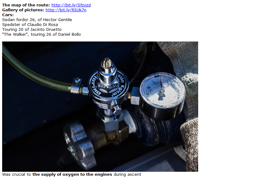 If you did that, there is no doubt that it can be done to a T. And if they added Oxygen for the climb to the top of Abra el Acay in the province Salta, Argentina, just 16,000 ft above sea level then ........ http://www.mtfca.com/discus/messages/41 ... 1400256343henryford2 wrote: ↑Sat Aug 14, 2021 9:57 pmAdded it to a mini chopper I built for my son long time ago (when the chopper motorcycle was the big thing) Enjoy
