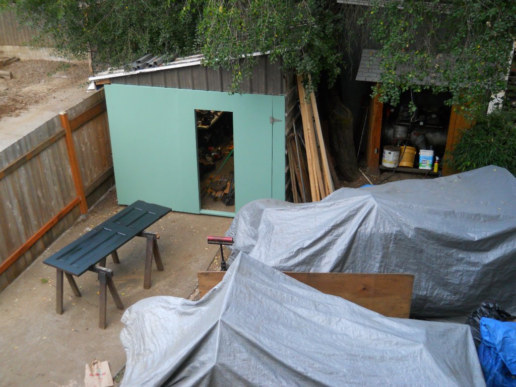 Garage/work space getting new door. Got to find a place for the sign, it's almost as long as the T.