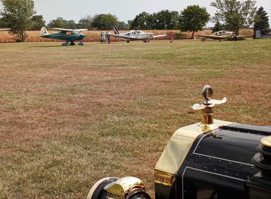 Every September the local chapter of the EAA invites model T groups for a fly/drive in day. This is the first time my wife and I were able to make it. Had a great time. Good comraderie, good food, gave rides in Clarabelle, our '13, just an excellent day.