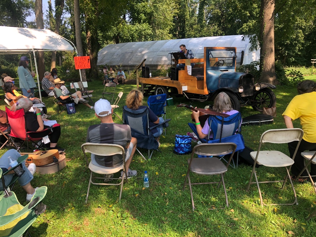 During our Fiddle & Folk Fest, (fiddle and folk.com), we set up the truck to be our ‘open mic’ stage. Added stairs to the back, parked and chocked, added speakers and the mic and we had a very successful area for folks to sing their hearts out!