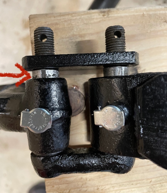 They don’t look to be tapped but no idea if they are for the rear. Have holes that look like they should have a great cap on front? Was thinking of buying new ones or using washers. I just installed new bushings and reamed them. Slides right in but too long.