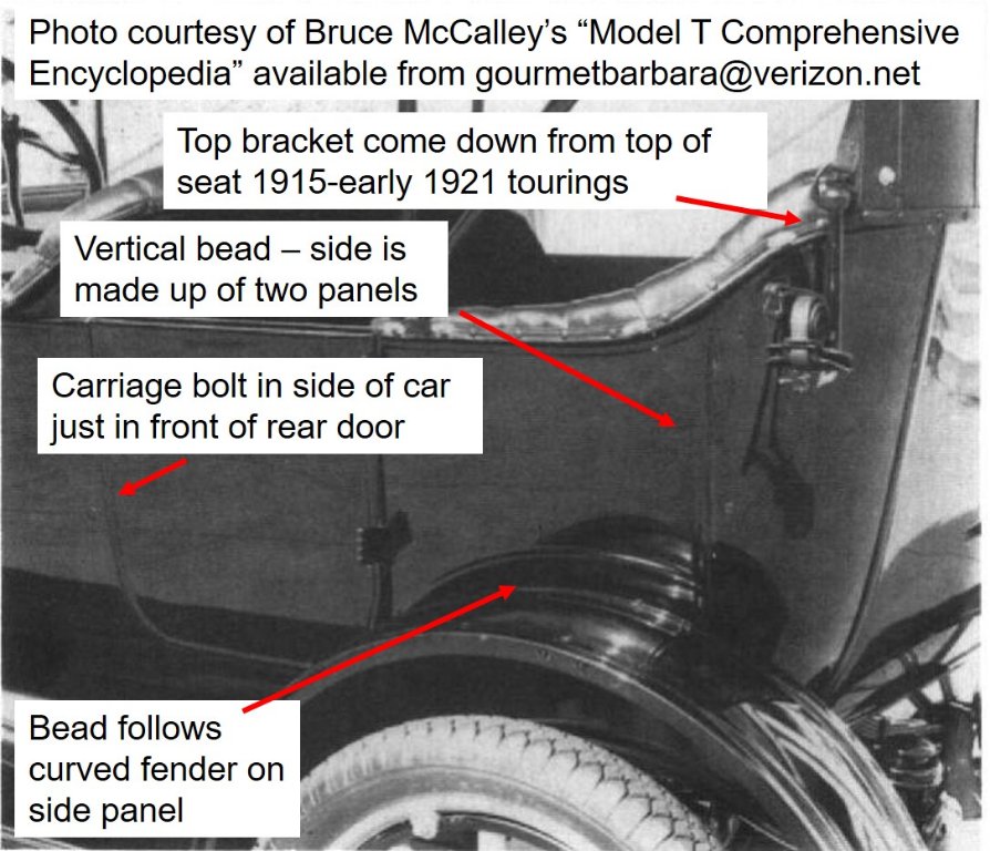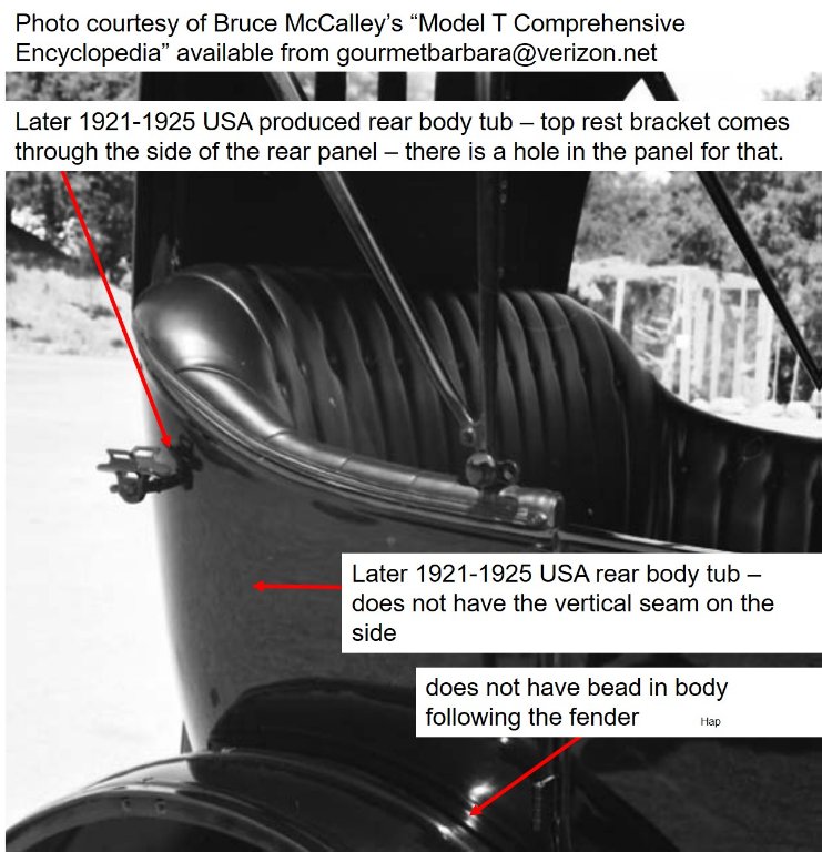 Note, I have seen the later 1921-1925 USA “3-panel” rear section mated to a 1915 USA touring body. It does fit and 99% of the public would never wonder if it was the original rear seat section or not.