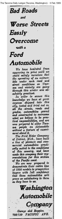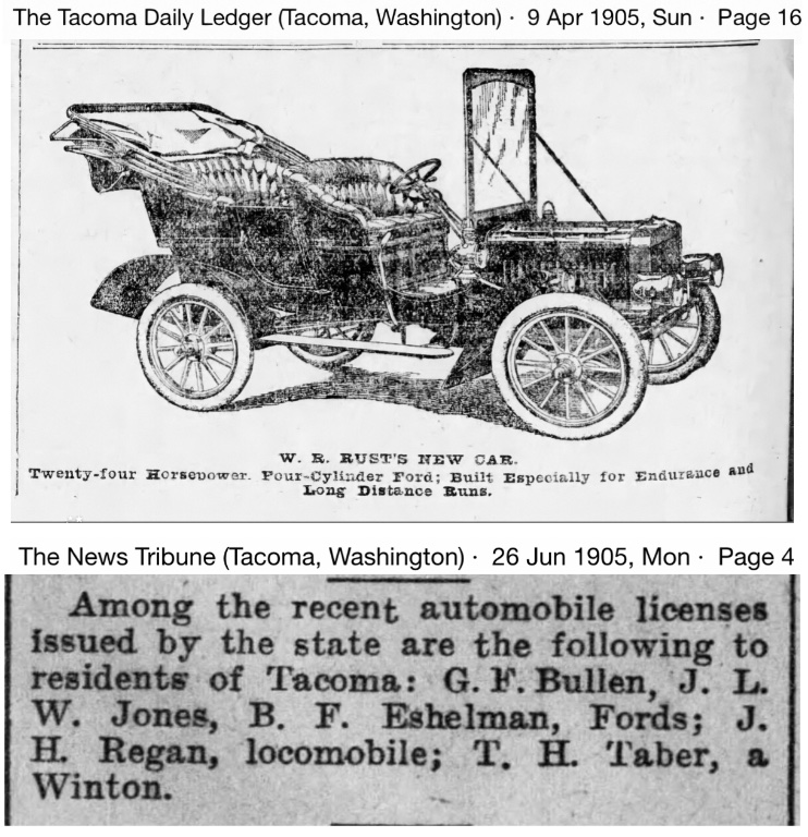 During the first half of 1905, the local newspapers report Fords being sold in Tacoma: