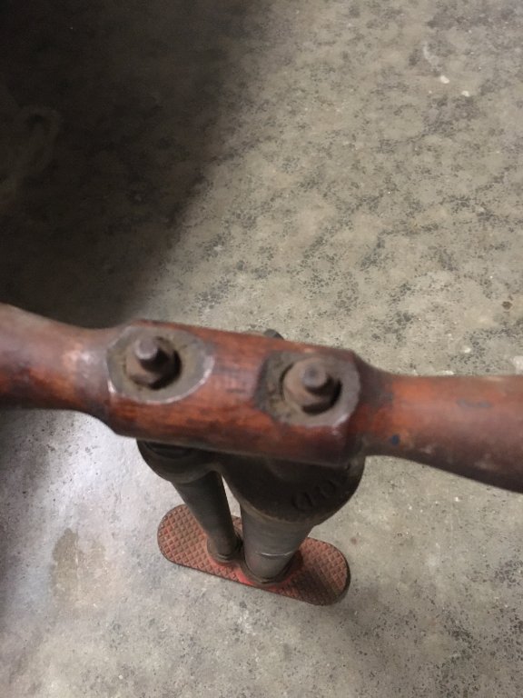 1) Is this handle correct? Are the "divots" where the rod goes through supposed to be there or is it something someone did to get easier access to the nuts? I couldn't find a definitive pic online.