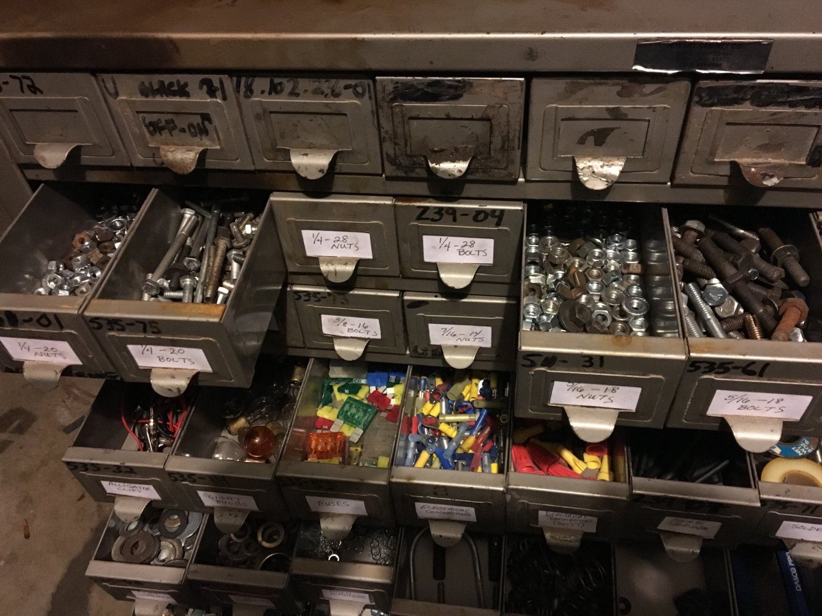 my Grandfather's garage, each filled with different kinds of nails, washers, screws,