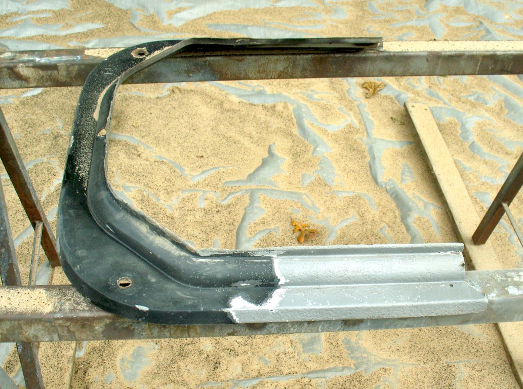 Got started on blasting my hood former. The paint was easy, but the Bondo under it was mighty slow going. I finished about two thirds of the front, and should be done with blasting tomorrow, weather permitting.