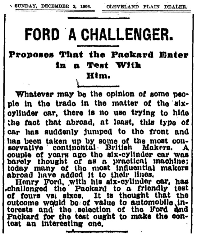 I didn't expect to find Henry Ford quoting Dickens, but that's apparently what he was referring in late 1906 in response to the Packard sales manager's press release concerning six cylinder automobiles. Sales manager Waldron began, "Six-cylinder cars are a fad and much over-rated....... : "