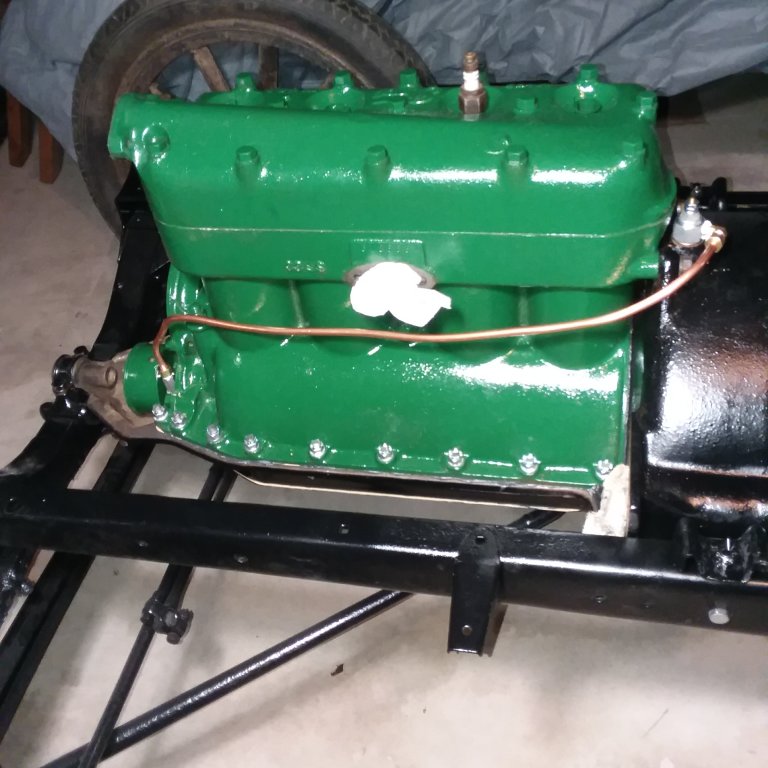 I am working on a '27 Tudor and have been contemplating the same thing. Using the photos of the display engine at the Henry Ford as my reference I have been trying to come up with a match. Of course computer screen images are not always completely accurate representations but that is all we have to work with. I have displayed that picture on multiple screens and they seem to be pretty close to each other. What I have found is that Rustoleum Moss Green, satin is a pretty close match. That is what I am going to go with on my engine. If anything it might be just slightly lighter in shade. That is hard to determine as there are differing shades in the photo due to differing lighting conditions on various parts of the engine.