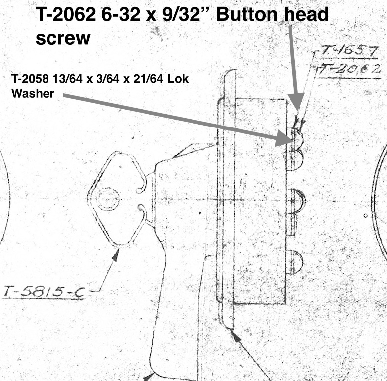 Factory print detail of part numbers for the wiring screw and lock washer used on the ignition switch.