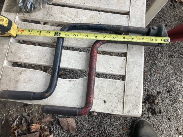 The bends in the longer one also look to be less sharp than the red one. My guess is it was hand made for a specific fitment. If the sleeve is rusted tight on the handle, it can be freed up. Use heat to get it cherry red, allow to cool, Lay it on a vice and gently beat on it with a hammer to break up the rust and check progress. Repeat if needed and once just a little bit free, add lubricant and persevere. It will turn eventually.