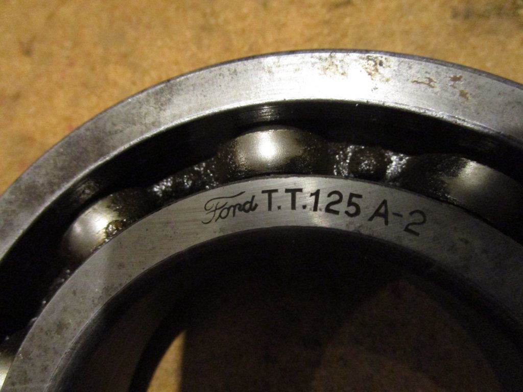 Going thru some more boxes from the auction. Found these two bearings. One is an original Ford bearing and the other is the modern replacement for it. The bearing is approx 4-1/2-inch OD, 2-3/8 ID, and 7/8 inch thick. I did not have a mic handy so I just measured it with a ruler. The picture shows the original part number with TT and Ford script. So is this a TT truck part, or for something more modern? Thanks in advance for any info