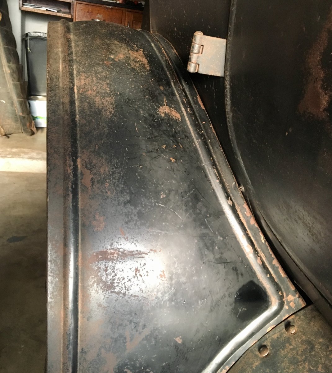 I bought a NOS rear fender for my 24 T Coupe several years ago. It had come from a local Ford dealership and had gotten dings and scratches over time. The paint had dulled out.