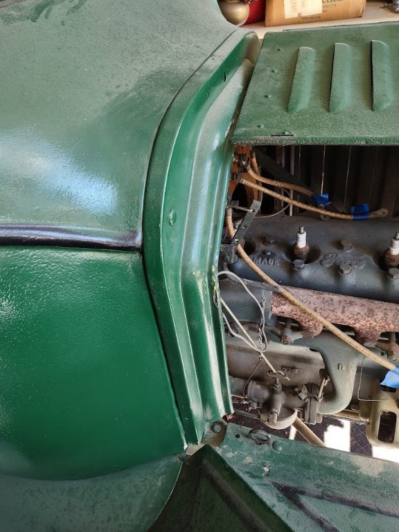 I am trying to determine the year of my new project. This touring car has a 21 3/4inch hood with six louvers per side. There is a cowl so the hood does not reach the wood firewall. There is a battery box below the rear floorboard and I am sure this is a replacement engine/trans as there is a generator and starter motor. There is no ammeter. The black box mounts to the firewall and the key attaches to it. Radiator is brass and there is an acetylene generator but all running lights are painted. The radiator is probably not original.