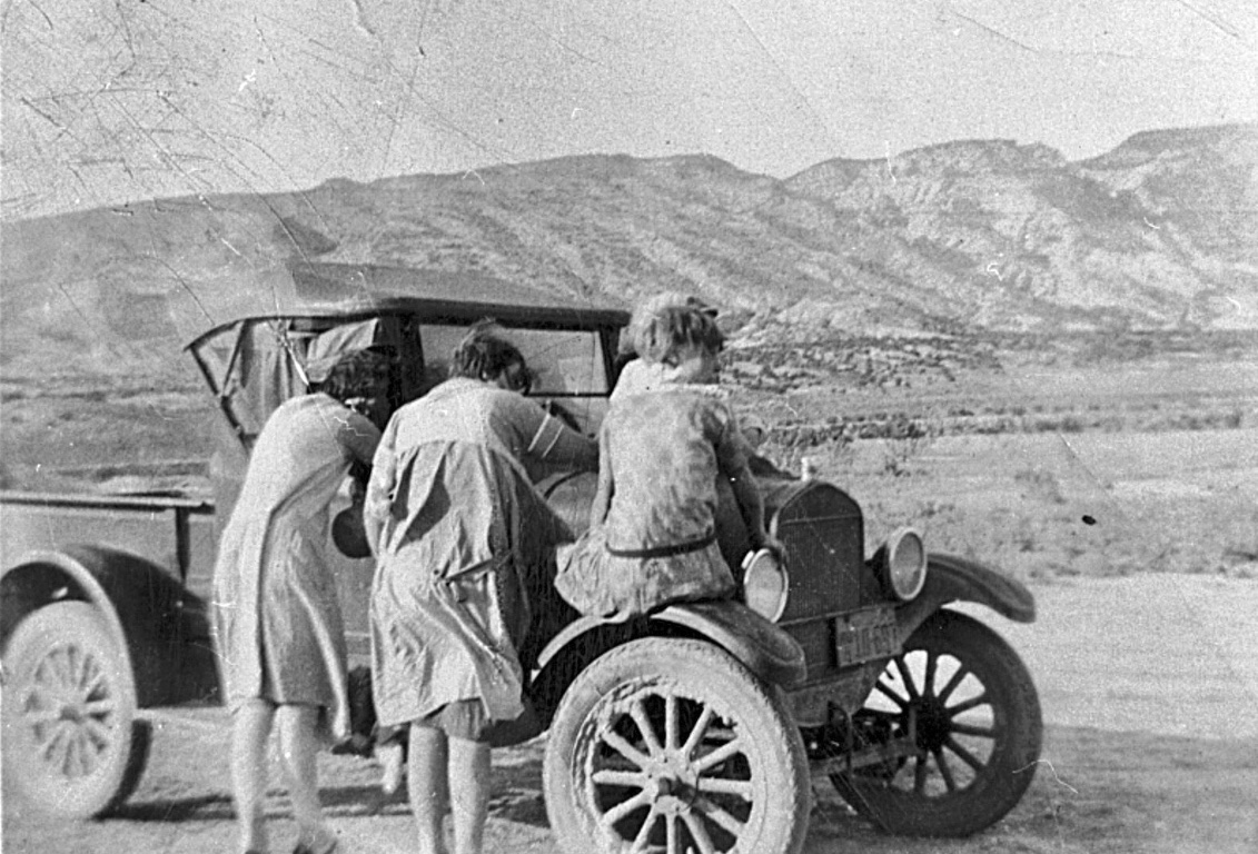 In the 7th and 8th pictures. The 7th looks like they are checking the gas, and the 8th is the same car in the same place but a lot more women and children. I wonder if they were all in that pickup or if there was another car accompanying them?