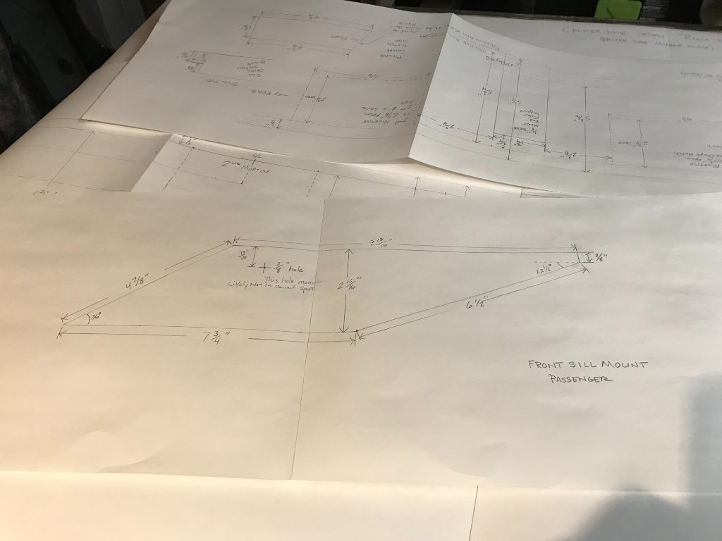 If not, then here are some photos. I am in the process of making drawings for the body sills for my Centerdoor. Using photos and measurements taken from my original wood pieces and pieces owned by Terry Miller, I'll show you briefly what I've done. I'm not ready to show final numbers yet as I want to make throwaway pieces out of cheap lumber (HA HA) first to play around with.