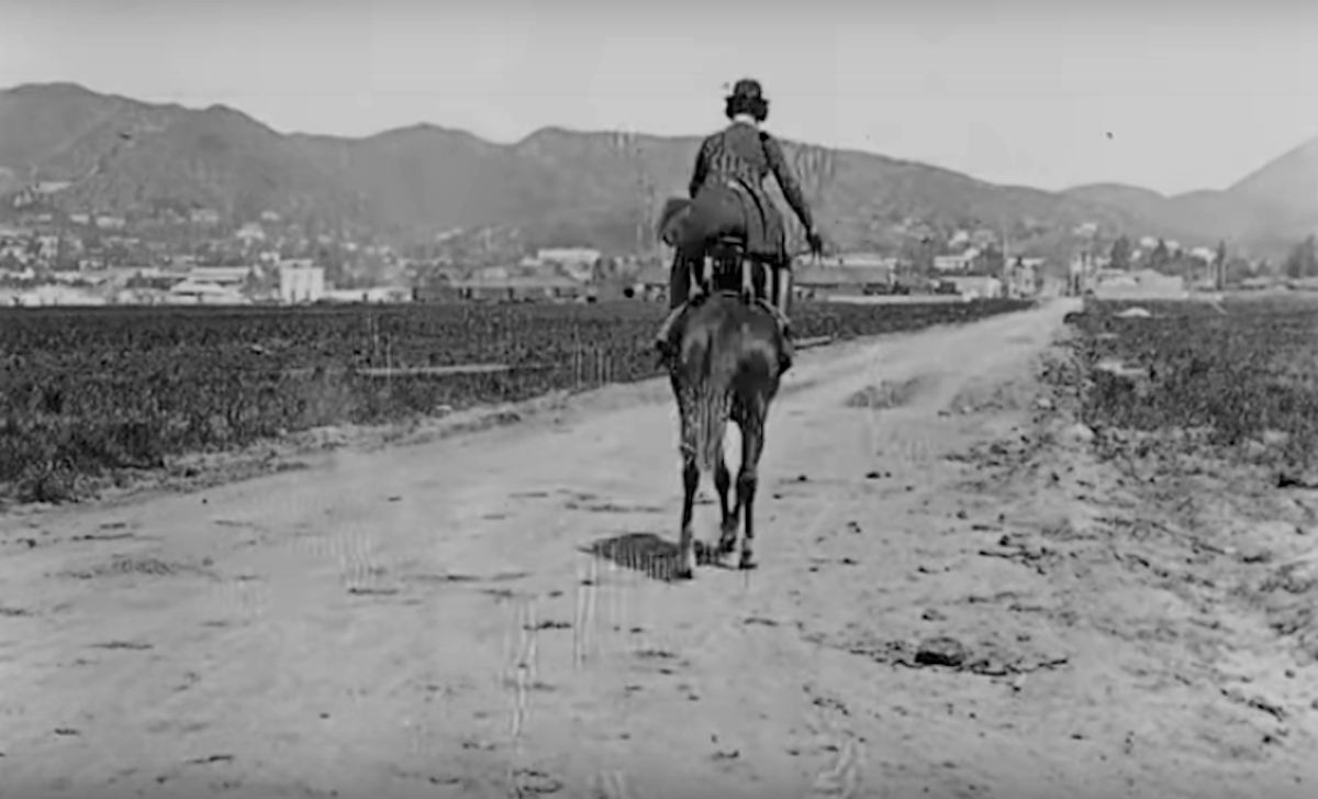 In the shot where the girl is riding up the dirt road towards Cahuenga pass, I'm guessing that's La Brea Avenue. Of course you can't confirm that now with Street View. Too many buildings in the way. It's rather remarkable to see fields of crops in the midst of Hollywood.