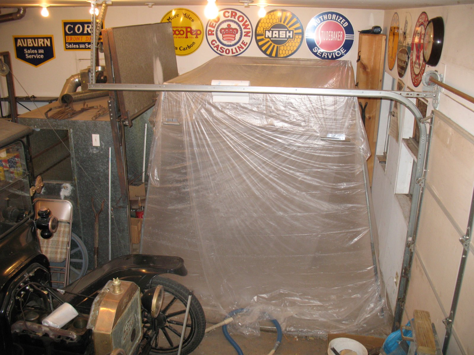 Get a gallon of black acrylic enamel, fast reducer (thinner), and a pint of spot hardener( sets up quickly). Get your car ready. On a still morning roll it outside on a clean tarp. After 10 minutes or so tack it and shoot it. Most dirt in a paint job comes off the car. Clean it, tape it carefully, and if you ain't in the Gobi Desert or the Everglades your paint job will be surprisingly clean. Any runs or bugs can be water sanded and polished after 2 weeks cure time if you used hardener. I sprayed acrylic enamel for many years professionally and prefer it over anything else. These 3 replica cars are wood bodied, lacquer primer and acrylic enamel with hardener shot out in my yard on the grass. The black Model A Ford trunk is wood. Best of Luck!