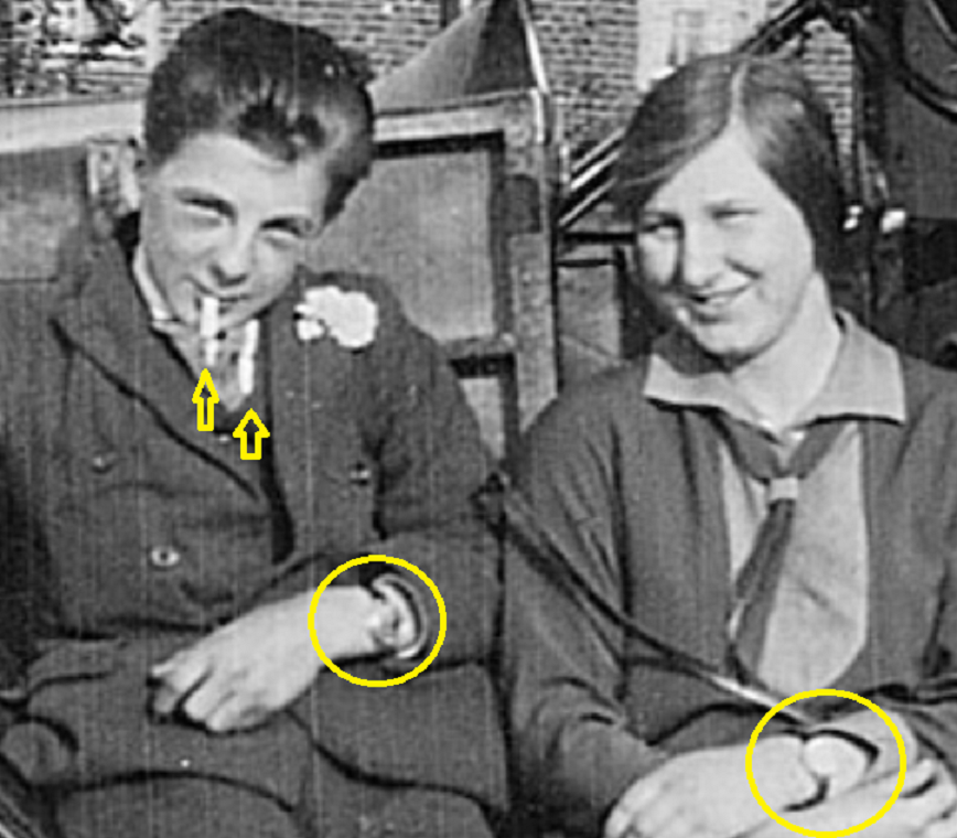 I think its a scratch on the print. Notice the watchesNorman Kling wrote: ↑Tue Jan 25, 2022 11:00 amIn that third picture there is who appears as a small man or a boy with something which looks like a cigarette. It could be a sucker, or maybe the saying is true,"Smoking can stunt your growth"![]()