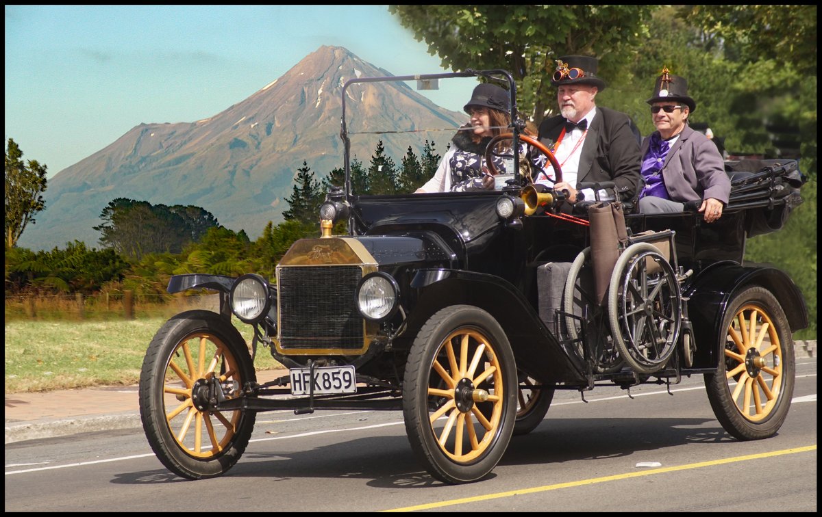 My latest Model T, a 1915 Depot Hack at the Dunedin-Brighton Run a couple of weeks ago, with me waiting for the nod to start my engine. Dunedin, New Zealand.
