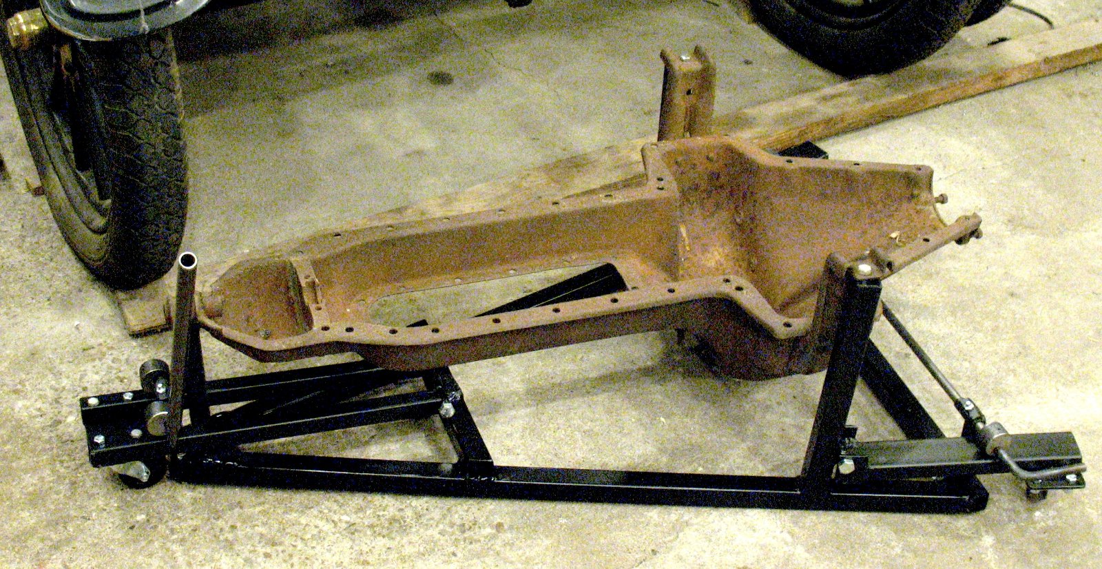 I'll start it off this month. This isn't a specific car, but any Model T engine/transmission I need to haul in my Suburban. With limited overhead room I can't reach in with a hoist, and I've been using a wooden stand I have to slide in and out. Putting it mildly, that is no fun. So I made a stand that sits low enough to fit and will roll in and out.