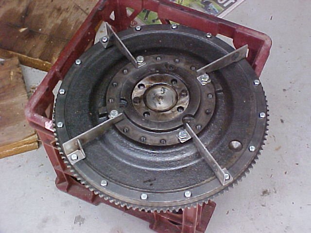I have an engine with flywheels that weigh 1350 lbs each on a non-counterweighted crankshaft. The gyroscopic force at 200 RPM must be considerable, but it's a stationary engine. So far, the crankshaft has not broken. I believe that mis-alignment, torsional vibration, lugging, running loose bearings, and very long service cause most broken T crankshafts. A lighter flywheel would likely change the engine's natural vibration periods, whether for better or worse, I don't know, but I'd think it would tend to move the stronger vibration period(s) to a higher speed range. It might tend make the torque impulses hammer the transmission gears o/ U joint harder at some speeds/loads than otherwise.