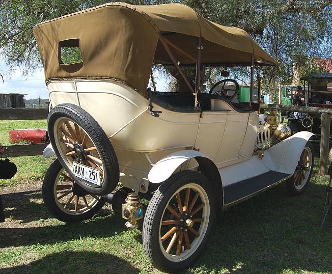 The cream Australian tourer is a very early Duncan and Fraser built car. D and F were Ford agents and distributors in Adelaide, South Australia. They were builders of high quality horse drawn vehicles, then tramcars and then their own line of bodies for the model T chassis imported into Australia. They ended up being the supplier of bodies to Ford when Ford took back the distributorships from each state, these being fitted to the Ford chassis in 1925. Once the Ford factory in Geelong was running for the improved 26-7 T's Duncan and Fraser ceased their body building enterprise.