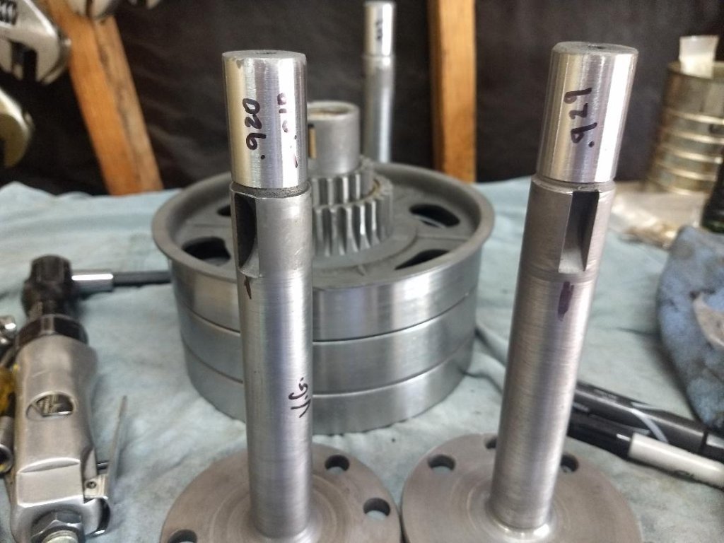 The drive plate was degreased & scrubbed clean. NO BEAD BLASTING. Oil plug checked & new bushing fit & bored for the center shaft. Set @ .004" clearance.