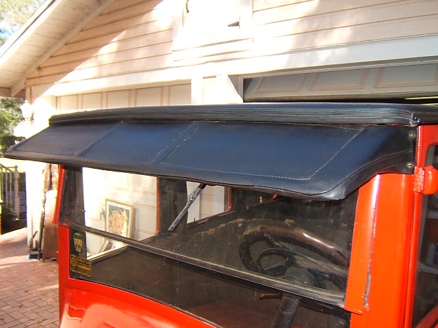 Are you going to get a proper sun visor for it? The one that is on there may have been on it when your Dad bought it, but the correct one is a frame of metal covered with vinyl and sewed around the openings. I have pictures of an original sunvisor on a factory original Fordor if you need me to send them. Jim Patrick