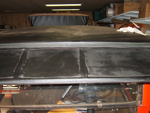 Forum member Don Booth won't be surprised but I was stunned by the extent of the rot evident on the top structure. This photo depicts the first step of the disassembly, removal of the old top covering.