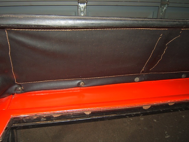 I have the fist of the upholstery off the door. This revealed a lot of original paint (much of it in excellent condition) and the original upholstery color. Tonight I plan to remove the window regulator mechanism to see if I can figure out what has brokenn.