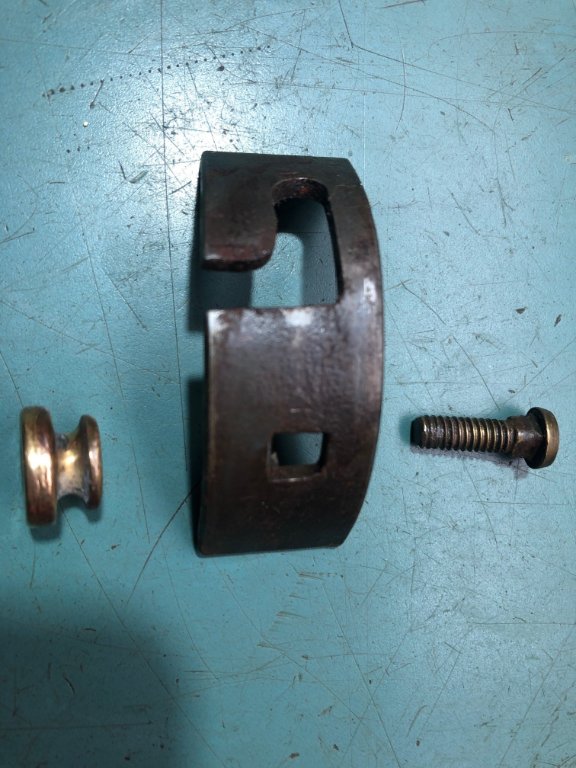 I really like the way you pressed that steel piece. I was brutal when I did mine. Found a scrap of strap iron the right thickness, slit it down the side to the proper width. Then hammered it rounded over a scrap of pipe to match the one from a matching lamp. I carefully copied and marked the holes and slots, then drilled a series of small holes, leaving a bit of room to file to fit. It didn't take as long to clean it up with good small files as I thought it would. Maybe about twenty minutes? The entire process took maybe a bit over an hour. I could have spent that much time searching small boxes at a swap meet (if there was a swap meet to go to?), and not found one.