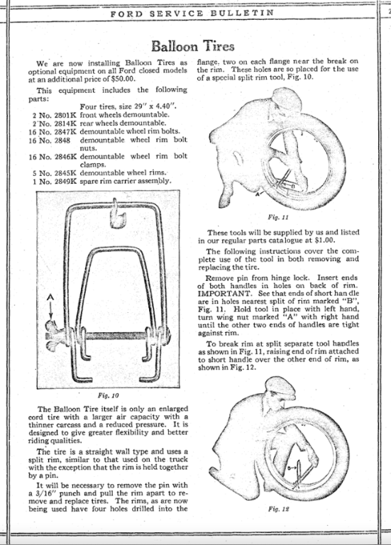 Also, Ford of USA offered the 21 inch so-called balloon tires and wheels beginning early for the 1925 model year.