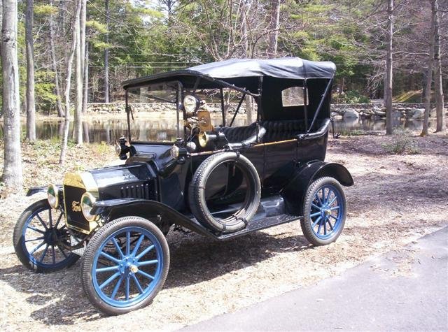 The side curtain fasteners generally attach to the seat upholstery outside tack strip, and the inside of the wooden part of the top bows. You should not need to make holes in the sheet metal. On original 1916 side curtains, each side had two points of fastening to the windshield area. One was a strap that went around the side light. The other was an eyelet on the top edge of the side curtain where it tucked behind the top bow area which hangs in front of the windshield. The eyelet attaches to a "Murphy" type fastener on the inside of the windshield top bow. Because you have clearance issues with your windshield, you may not have enough room for a Murphy fastener on your top bow. Here is a photo of an original 1916 touring with the side curtains installed.