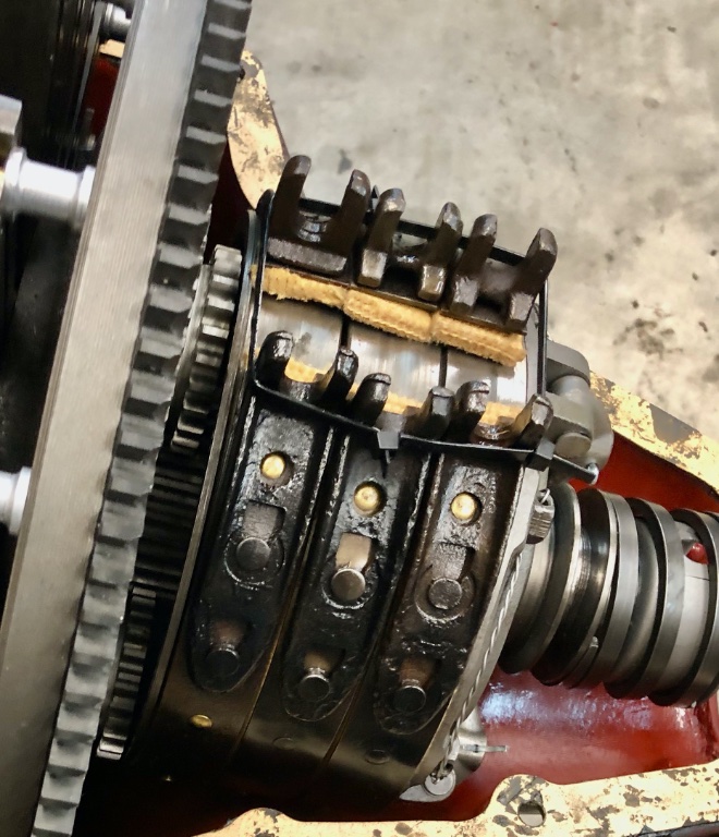 Today I removed the bands. I no longer believe they are Kevlar or meaty. 2 out of three have rivets worn a lot. To my surprise, all 3 drums & bands are narrow style. Brake drum has a score mark but not deep, no cracks in any of the drums and all the pedal ramps look good. I'm going to reline with Kevlar. What should the relaxed diameter of the bands be? As they came out, they measure about 9". My opinion is they should be formed to a slightly smaller diameter. Any suggestions?