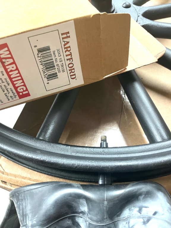 My friend says the Hartford tubes have the same incorrect rubber valve stems the last USA tubes had. The tubes made back in the sixties had a 1/2" rubber valve stem made by Schrader, and will fit snugly into a wood felloe. The flange of that tube says Schrader 35. It would be nice to know if Schrader still makes that 1/2 rubber valve stem?