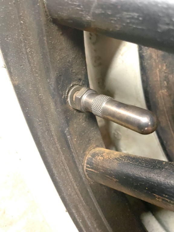 Those rubber stems won't fit into the felloe of early Ts or even the wire wheels. The rubber stem is tapered and fat at the base, can't pull it up into the clincher rim. Most everytime have to overdrill the hole for the valve stem with a step drill.