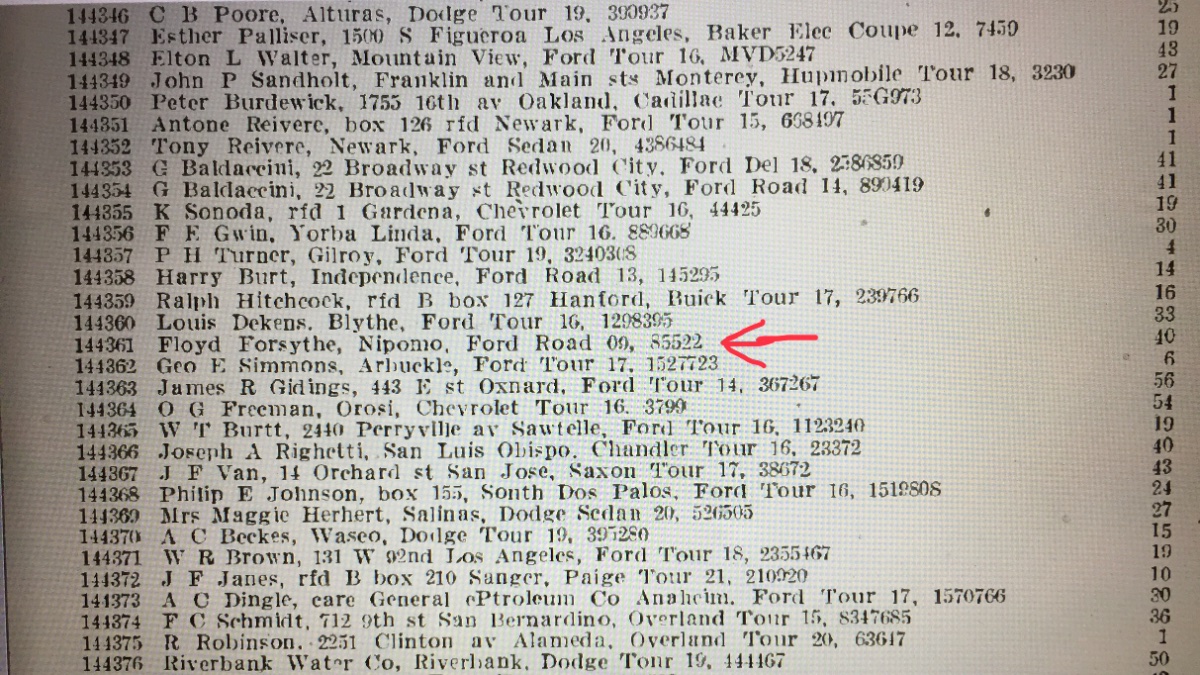 The number on the brass plate was registered with the DMV in California in 1921: Is this helpful for you. How does it change the conversation?