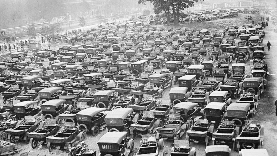 Someone once said that was one reason people would paint the wheels on their Model T a color other than black so they could find it easier in a sea of T's